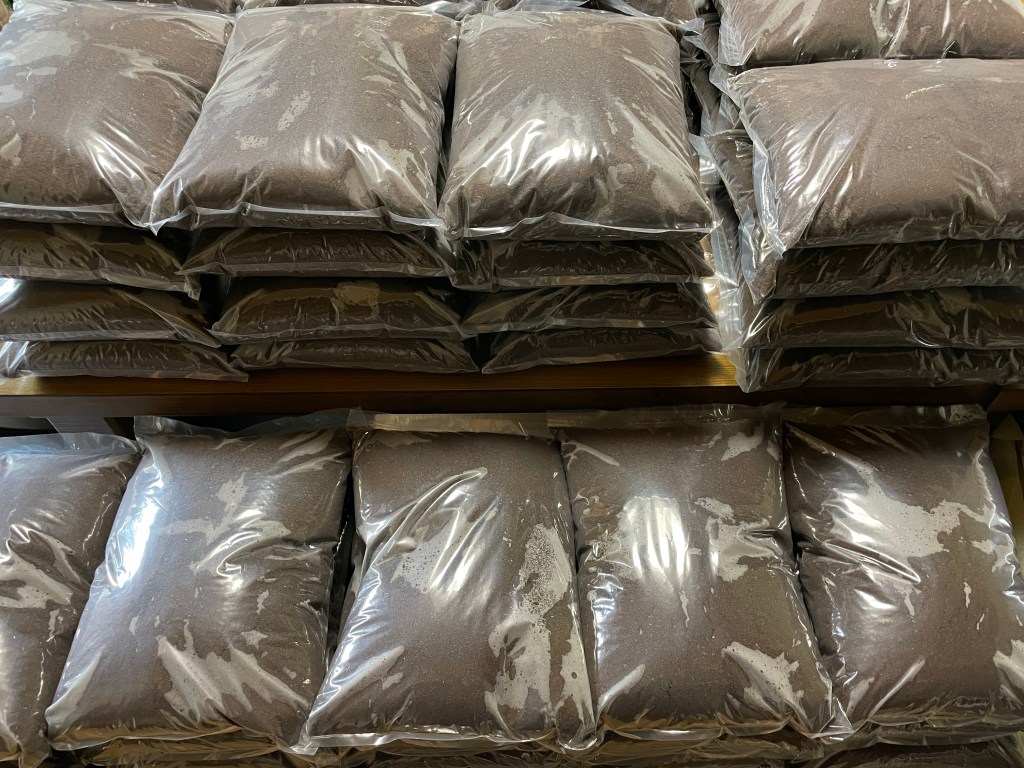 販売の際は10ℓ袋に袋詰めした商品を提供。量を多く購入される場合も10ℓ袋で対応いたします。(店舗にはお客様がお持ちいただいた幼虫のマット交換に対応する為、6ℓ袋も用意しています。)